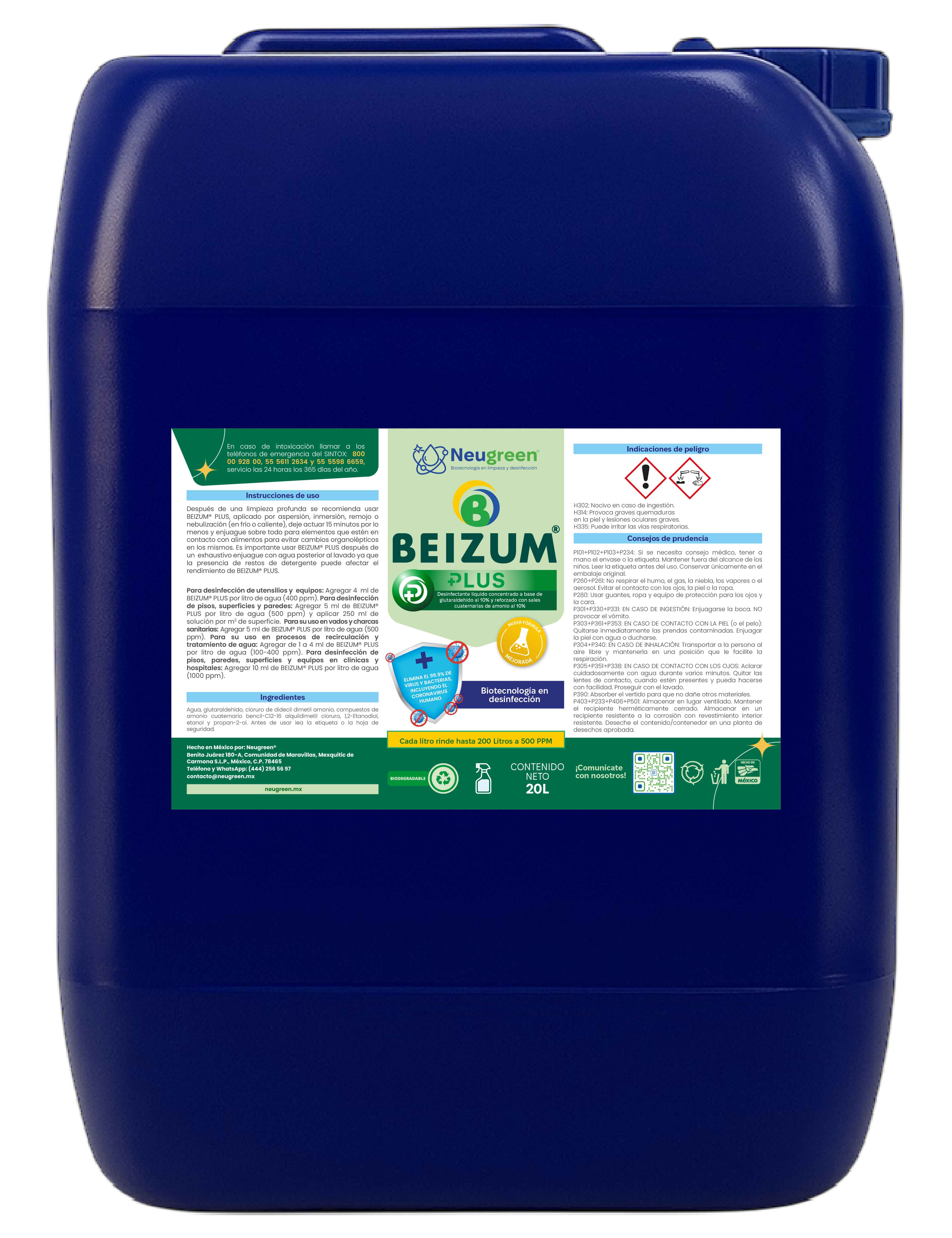 El BEIZUM® PLUS 10% es un desinfectante líquido ultra concentrado de alto nivel, formulado con glutaraldehído al 10% y sales cuaternarias de amonio al 10%, diseñado para la desinfección de superficies, equipos y espacios críticos que requieren un control microbiológico eficiente.
