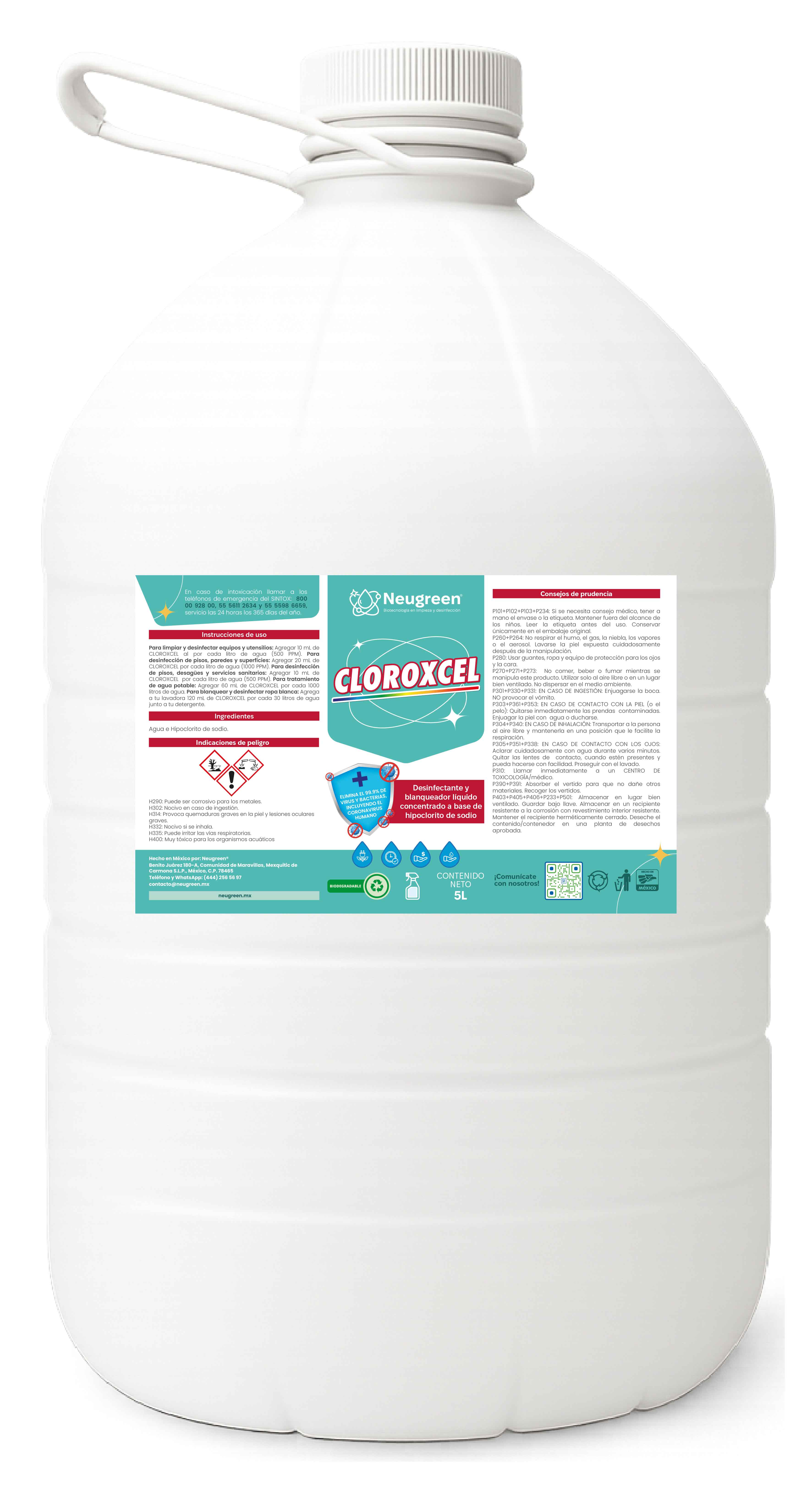 El CLOROXCEL Granel por Litro es un blanqueador y desinfectante líquido concentrado, elaborado con hipoclorito de sodio estabilizado, ideal para eliminar gérmenes, virus, bacterias y hongos en superficies, utensilios y ropa, además de blanquear eficazmente.