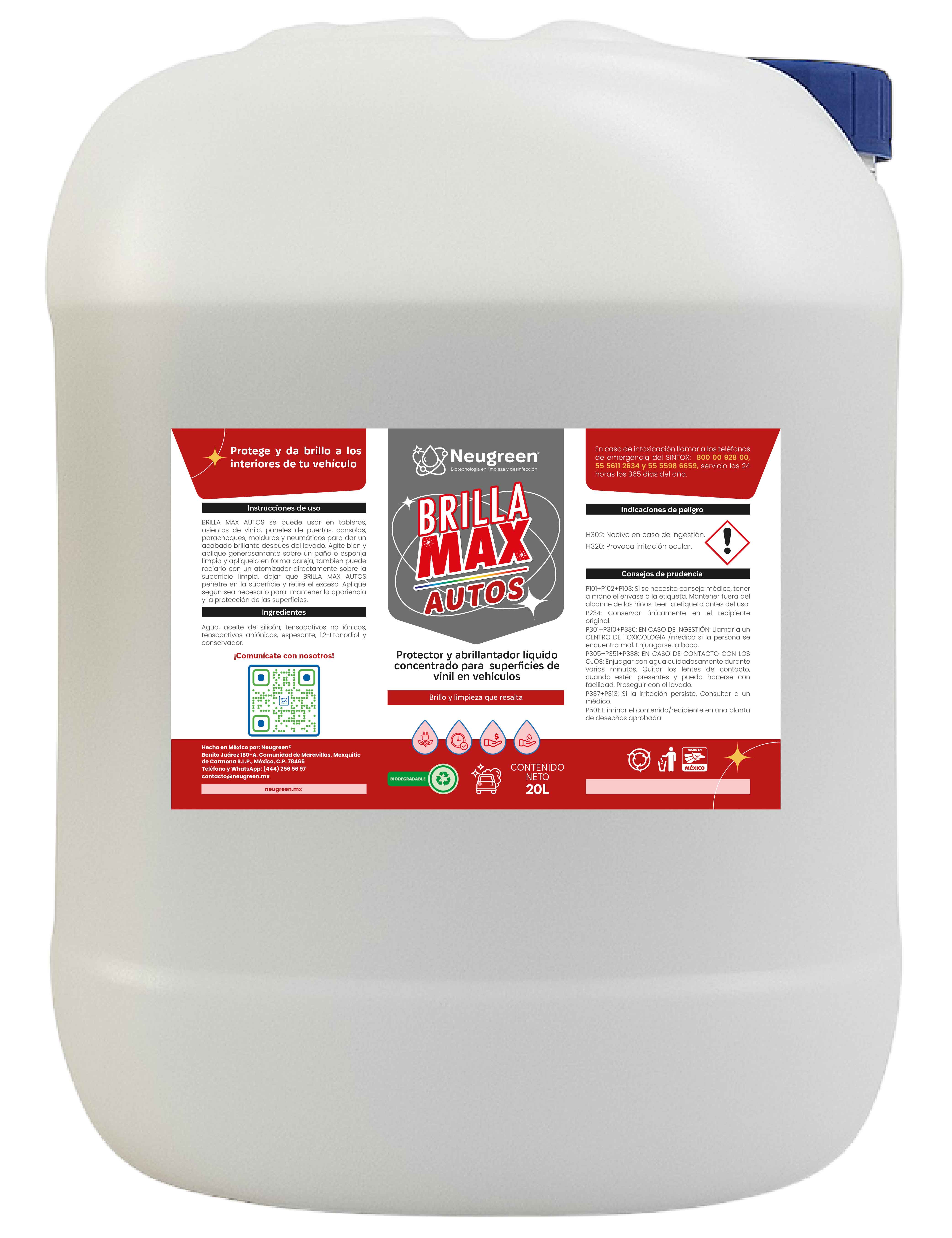 El Brilla Max Vinil Autos es un protector y abrillantador líquido especializado para el cuidado de superficies de vinil, plástico y hule en vehículos. Su fórmula proporciona un acabado brillante y natural, ayudando a recuperar la apariencia original de interiores y exteriores sin dejar sensación grasosa.