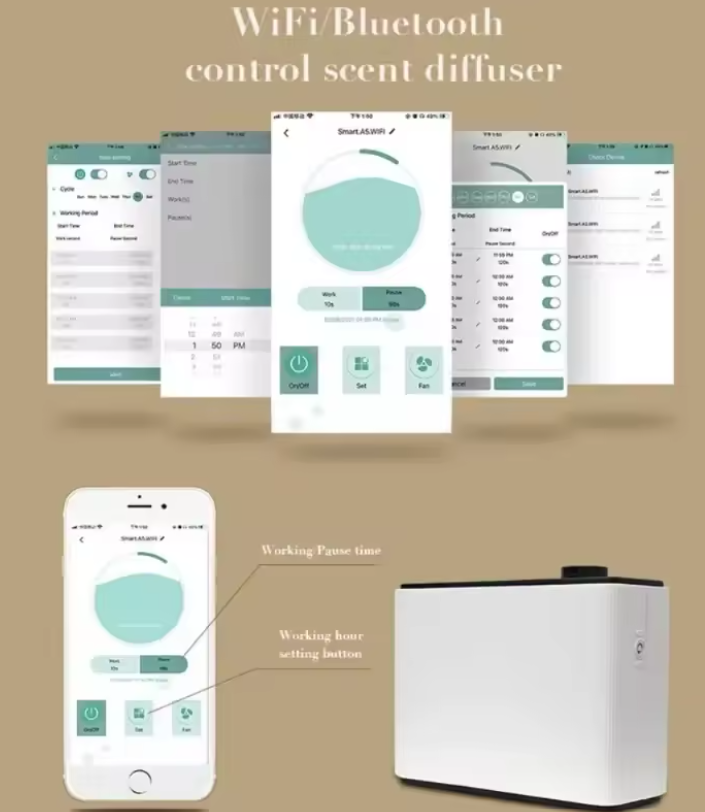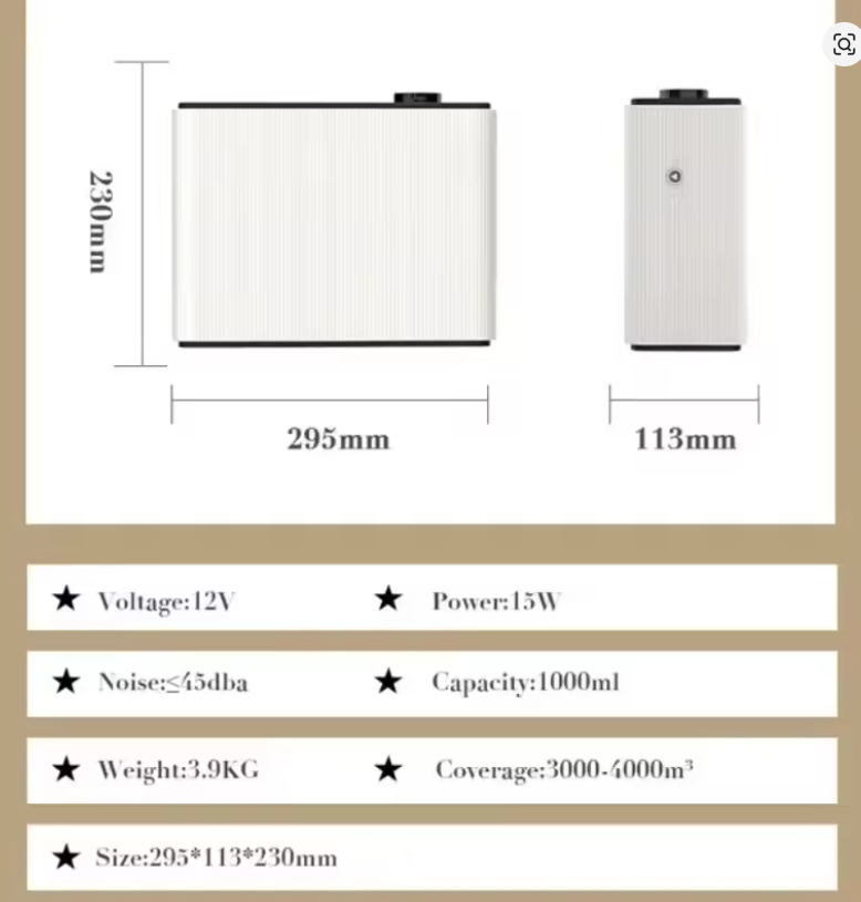 DIFUSOR DEAUTOMÁTICO PARA ACEITE ESENCIAL, FRAGANCIA, BLUETOOTH, 1000ML, 4000M2, NEGRO