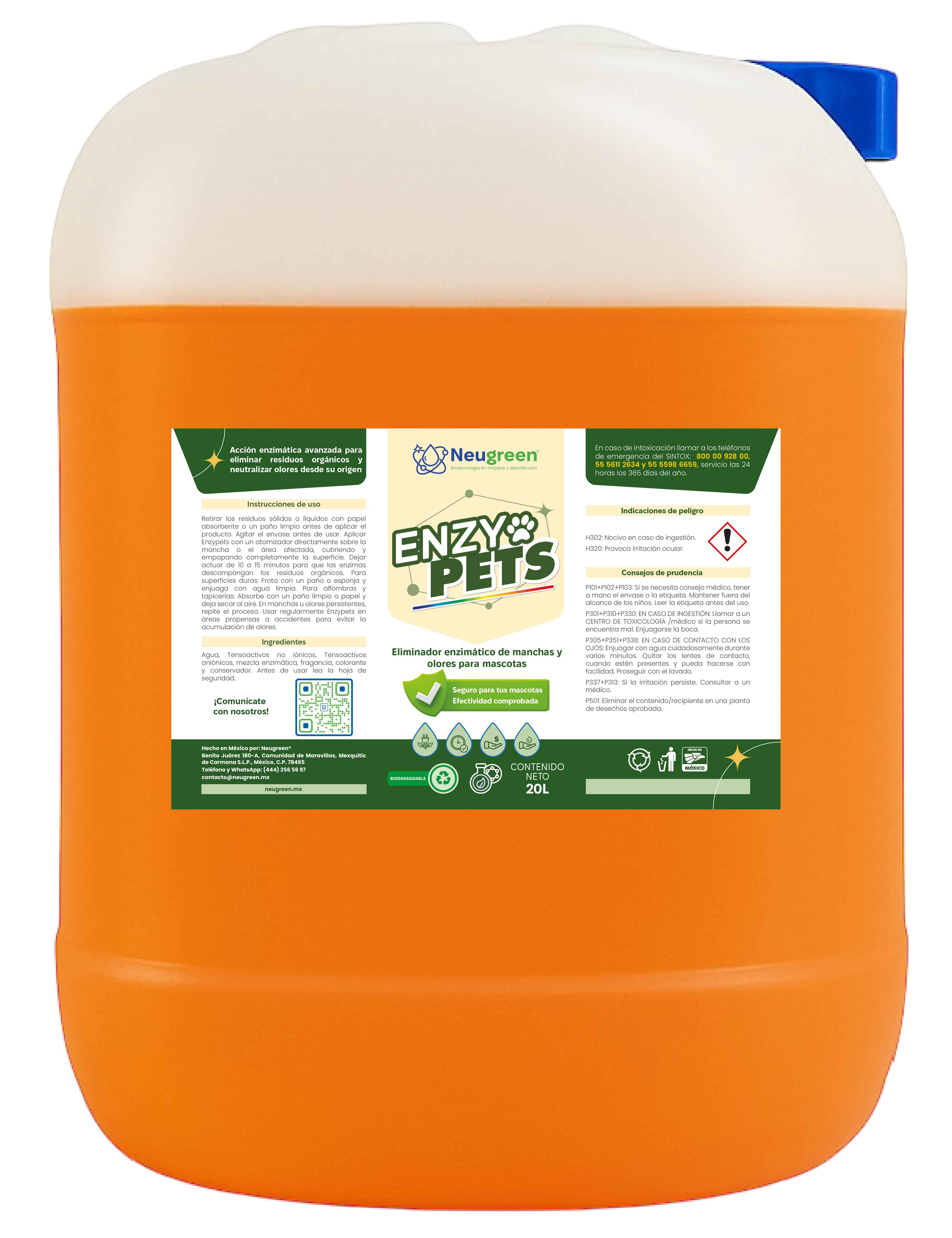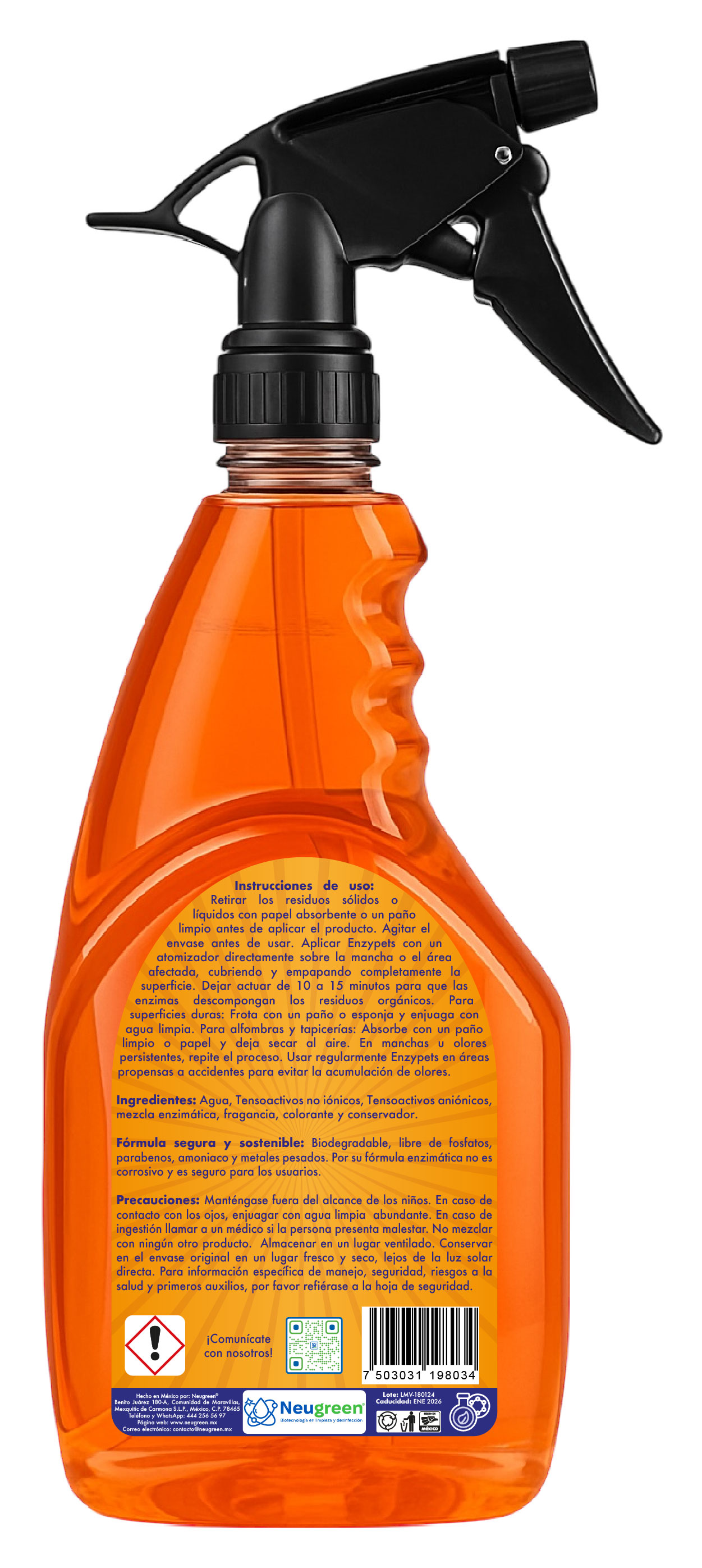 LIMPIADOR LÍQUIDO ENZIMATICO, ECOLÓGICO, CONCENTRADO, PARA REMOVER OLORES DE MASCOTAS